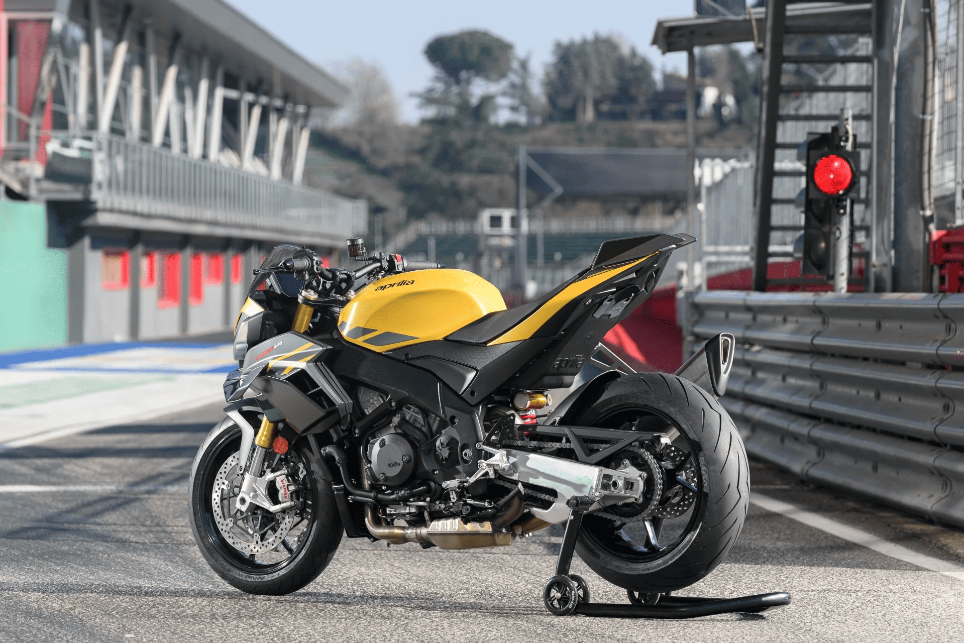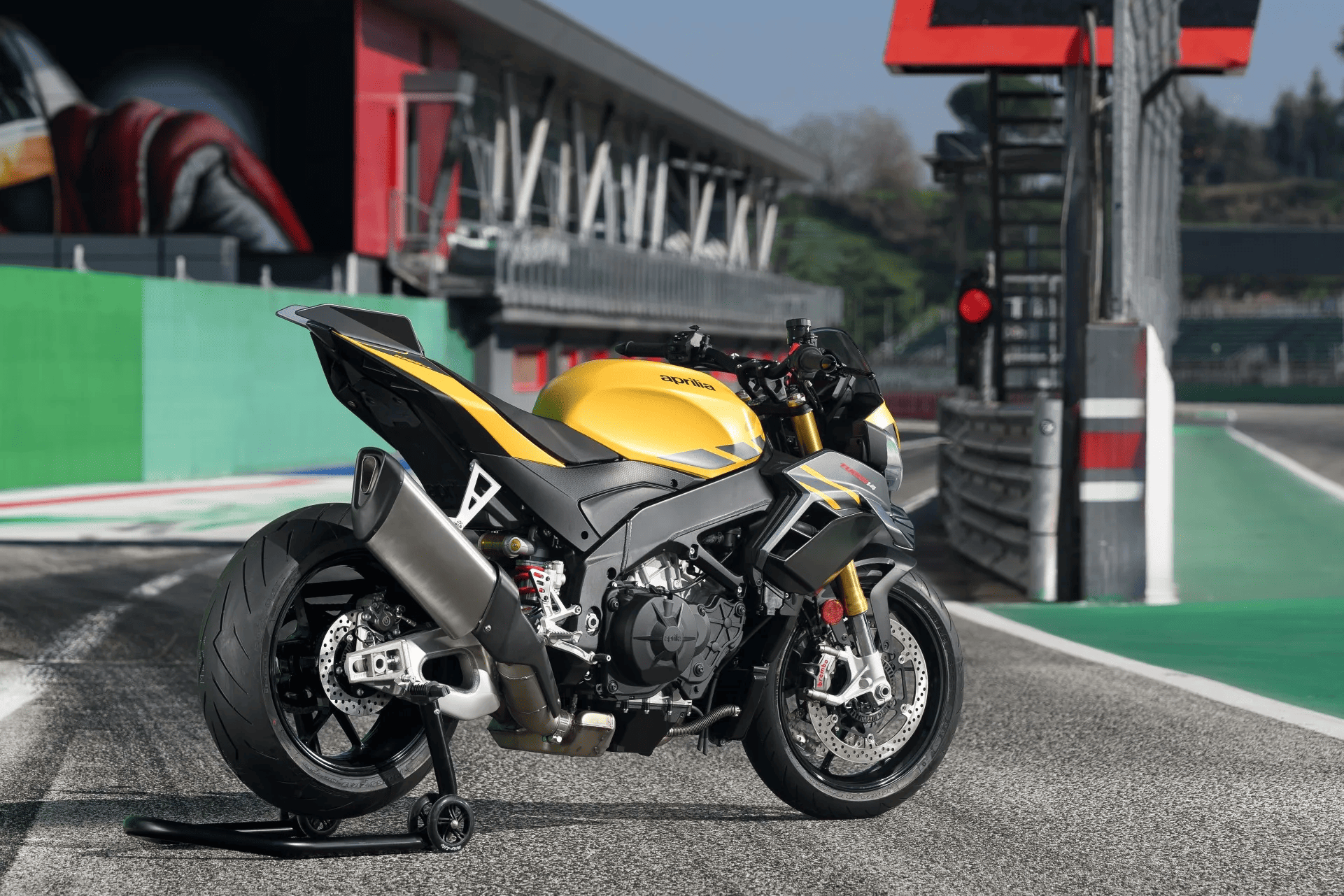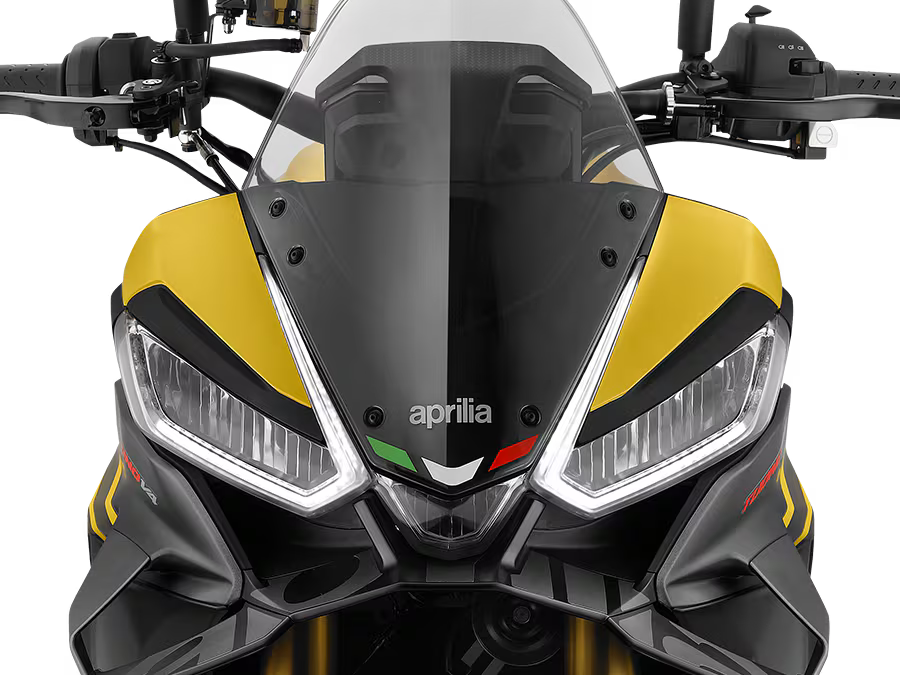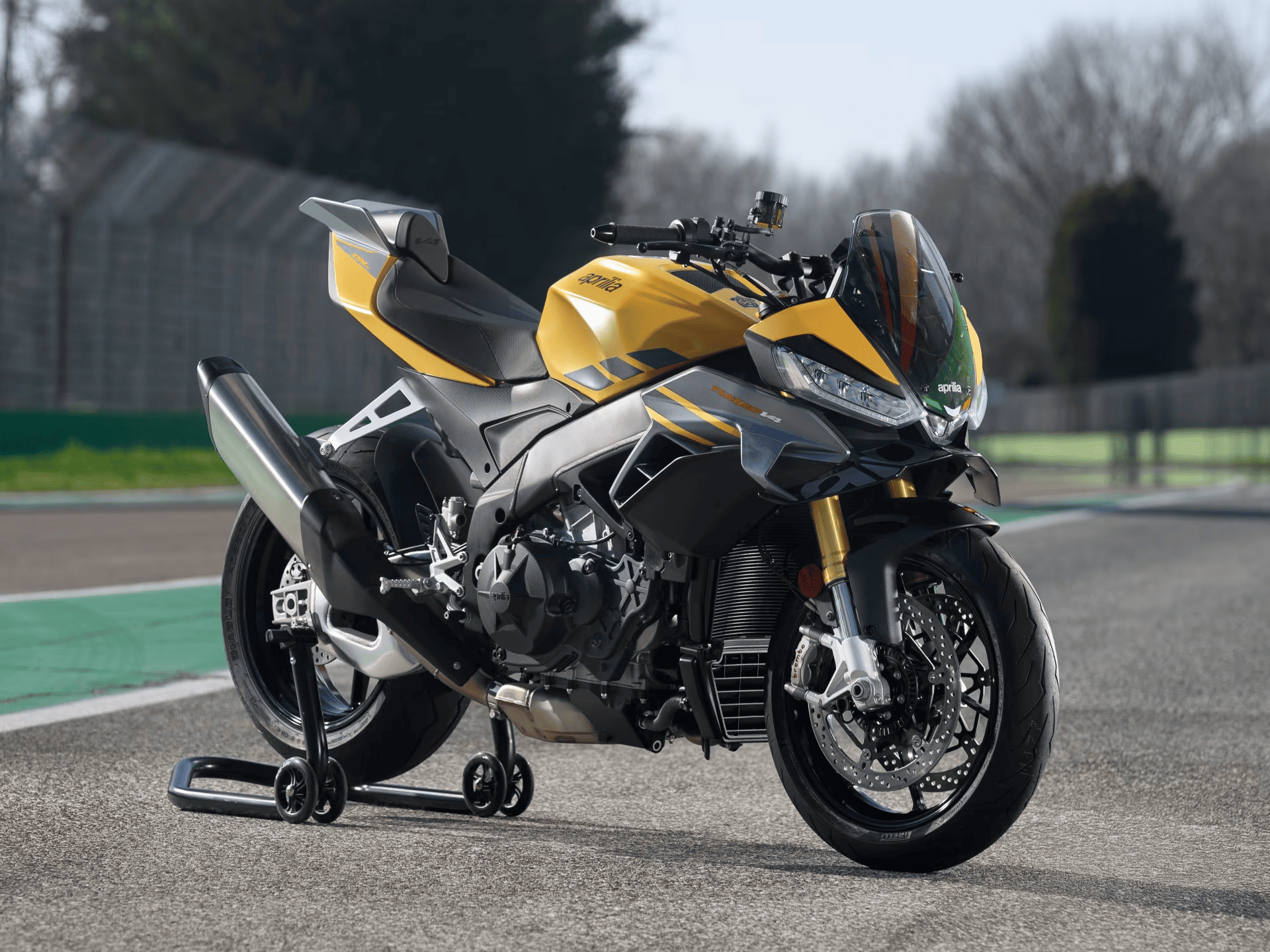 A Aprilia Tuono V4 combina performance desportiva com uma maneabilidade excecional. Mais versátil do que nunca, graças ao motor V4 com 180 cv e E5+, ergonomia melhorada, winglets para melhor estabilidade e um pack APRC customizável.