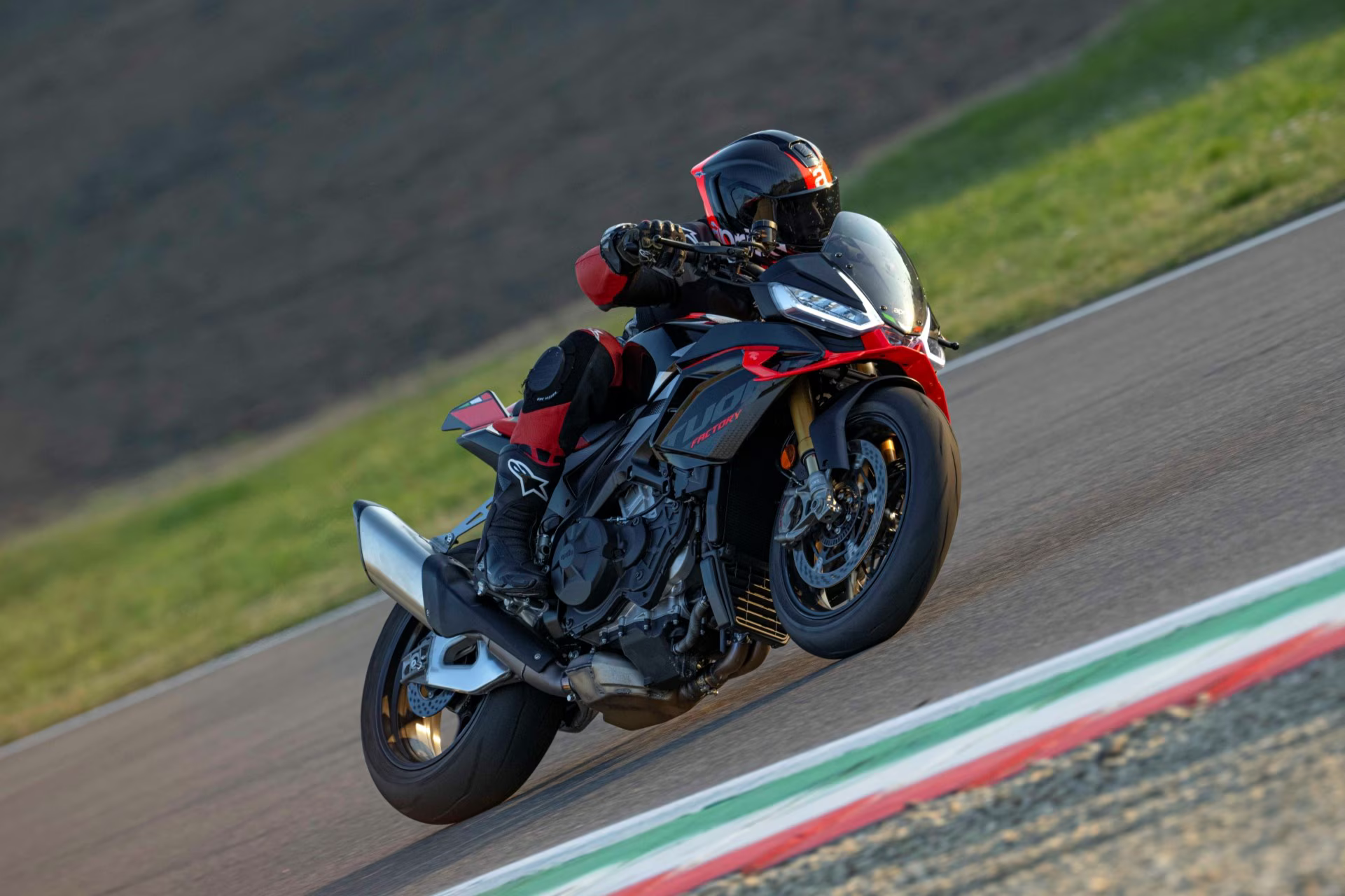 A Aprilia Tuono V4 Factory é a derradeira hypernaked, a moto com a mistura mais perfeita entre agressividade, potência e controlo. E, com as suspensões Ohlins semi-ativas, o motor V4 E5+ com 180 cv, aerodinâmica avançada e eletrónica APRC com lógica preditiva, é também imbatível em pista.
