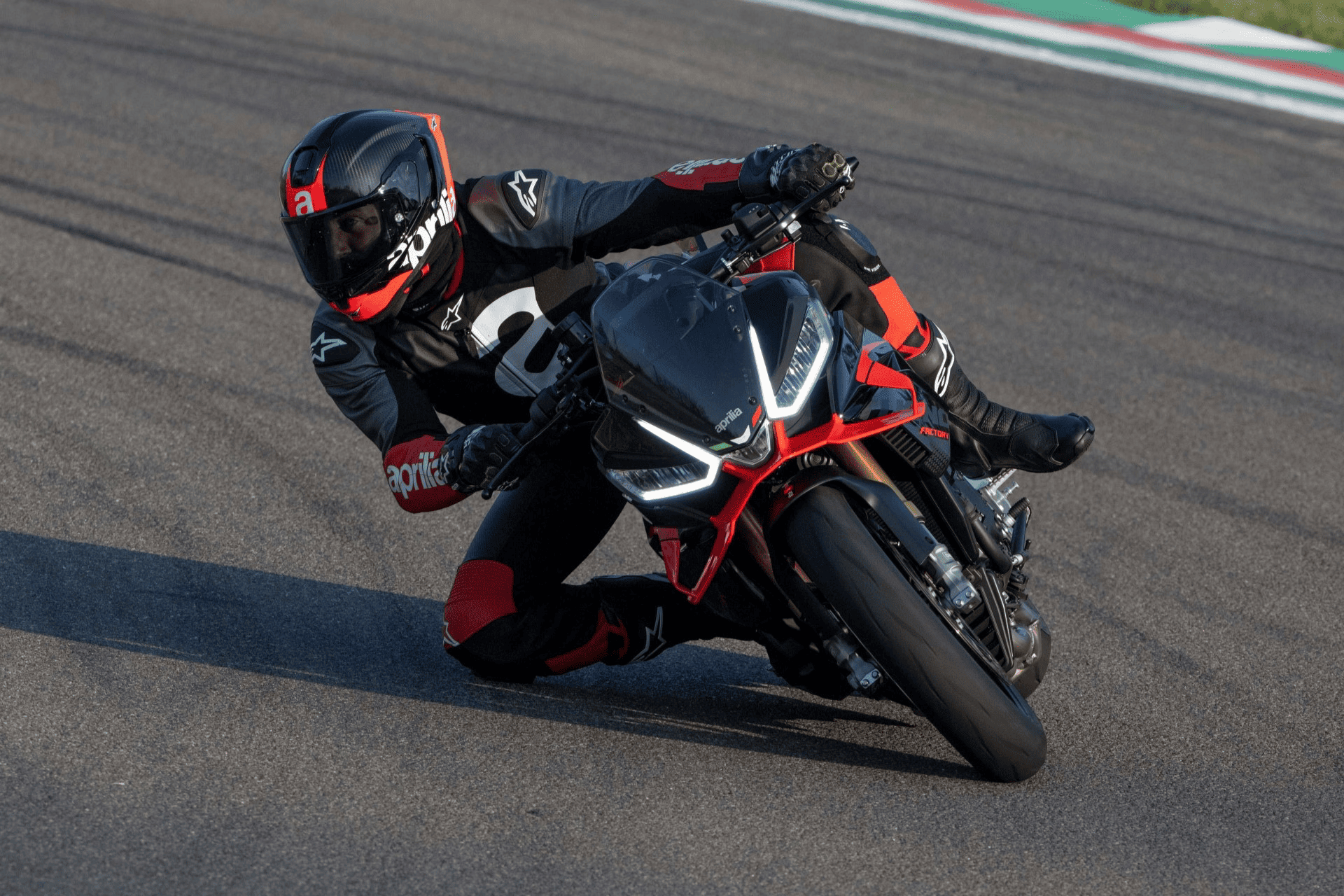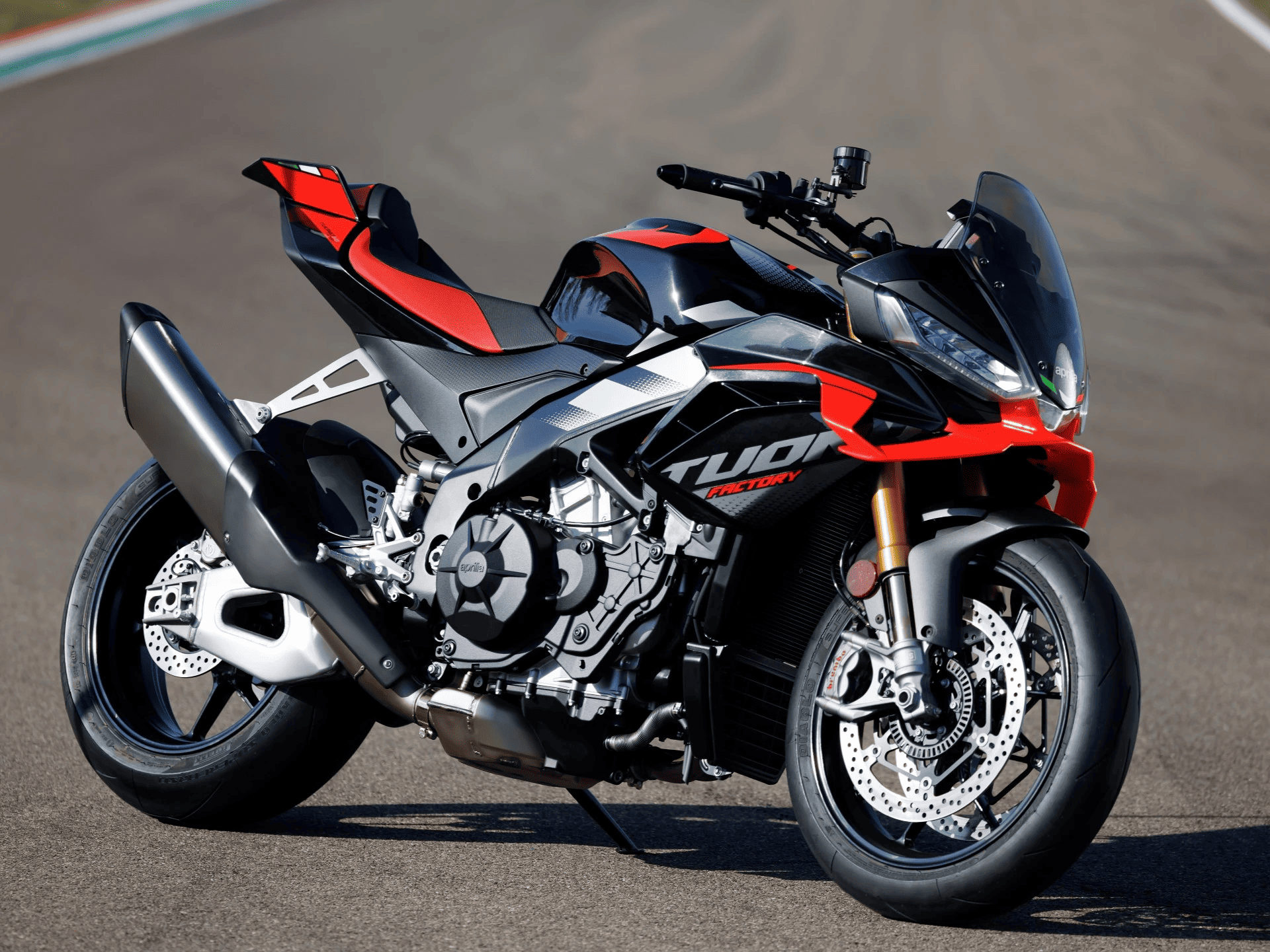 Desenhada para performance extrema, a Aprilia Tuono V4 Factory representa o pináculo da desportividade das hypernaked. O motor V4 a 65° entrega 180 cv e está perfeitamente sincronizado com o quadro em alumínio e com o sistema de travagem Brembo, respondendo a todos os comandos com precisão cirurgica. A semi-carenagem dianteira oferece um nível de proteção de vento que nenhuma outra moto consegue alcançar, enquanto que os apêndices aerodinâmicos, decorrentes da experiência Aprilia em MotoGP, asseguram estabilidade e precisão em curva.