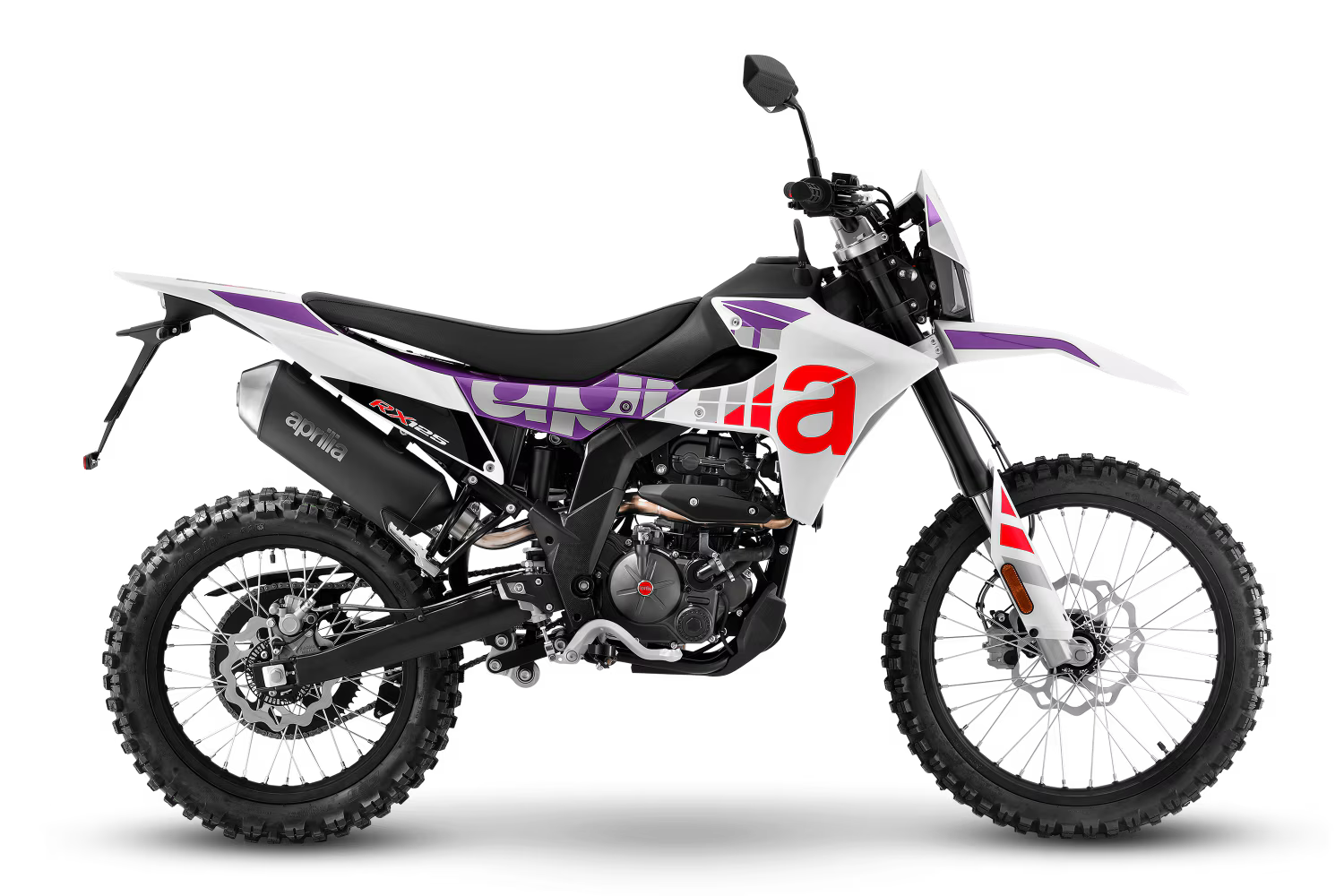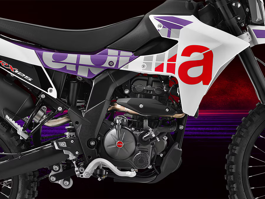 O design da Aprilia RX 125 é esguio e minimalista, com linhas fortes que se estendem da frente para a traseira, enfatizando o seu DNA racing. O escape em preto mate integra-se na perfeição com o quadro em preto mate, guiador, motor e braço oscilante. As jantes anodizadas em preto, em tamanhos otimizados para o off-road (21´´na frente e 18´´na traseira), combinadas com pneus cardados, asseguram o melhor controlo e tração em qualquer terreno.