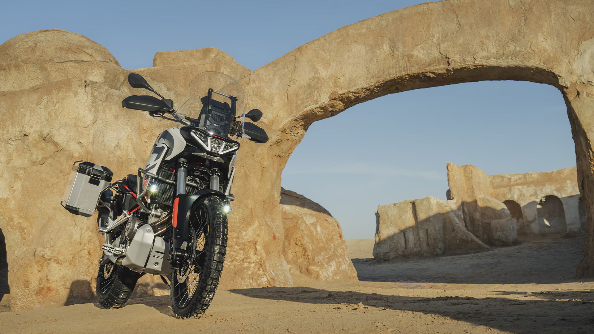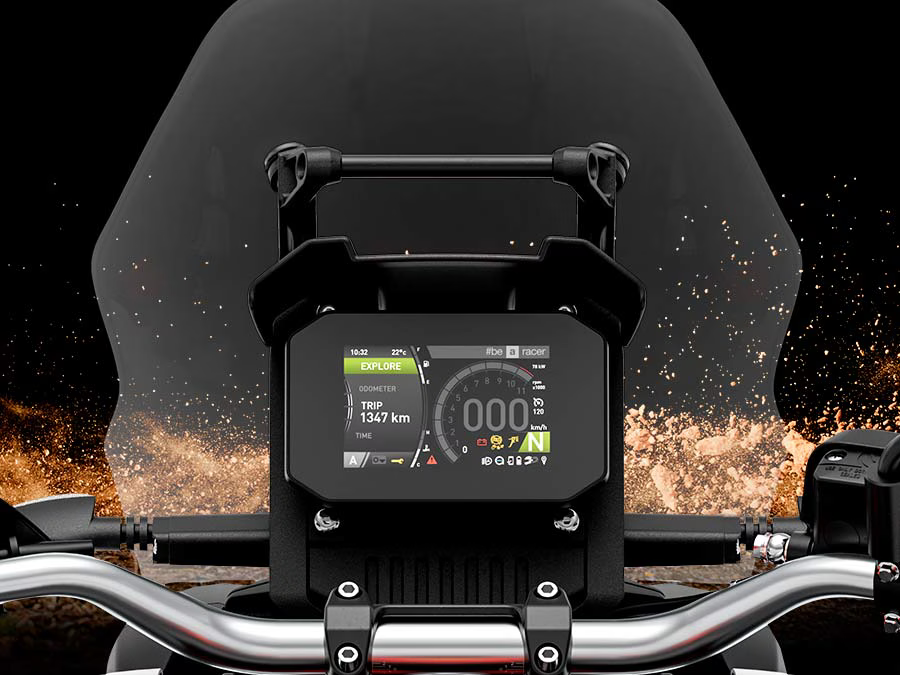 O motor bicilindrico paralelo a 4 tempos, refrigerado a líquido e homologado Euro 5+ produz 80 cv às 9.250 rpm, para um equilíbrio perfeito entre potência e controlo em qualquer tipo de terreno. Os corpos de injeção de 52 mm garantem altas prestações em todos os regimes de rotação, proporcionando uma resposta imediata e decisiva.