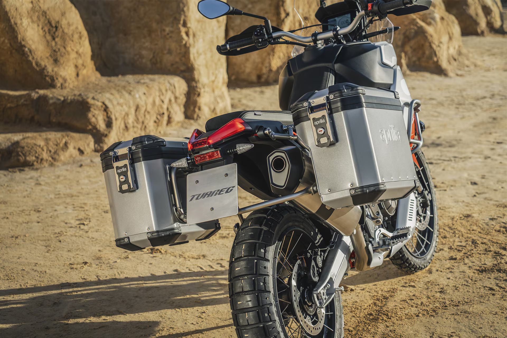 A Aprilia Tuareg, leve, funcional, intuitiva e altamente performante nasce das raízes do off-road. A sua silhueta, marcada pelo lendário farol triplo, apresenta uma estrutura elegante e robusta. Todos os detalhes transmitem força e energia, desde as linhas ousadas aos grafismos arrojados e ao banco de duas cores. Cores que evocam a fusão entre a natureza e o poder dos elementos.