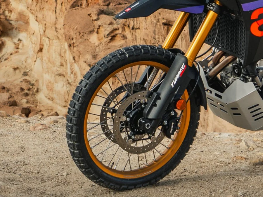 A Aprilia Tuareg Rally está equipada para o off-road mais extremo, graças às jantes Ergal com raios, à proteção de cárter em alumínio reforçado e aos pneus com câmara de ar. A suspensão Kayaba totalmente regulável conta com 240 mm de curso, a melhor entre as motos bicilindricas, e é dotada de molas com constante elástica linear, que melhoram a condução em terrenos difíceis e reduzem o sag estático.
