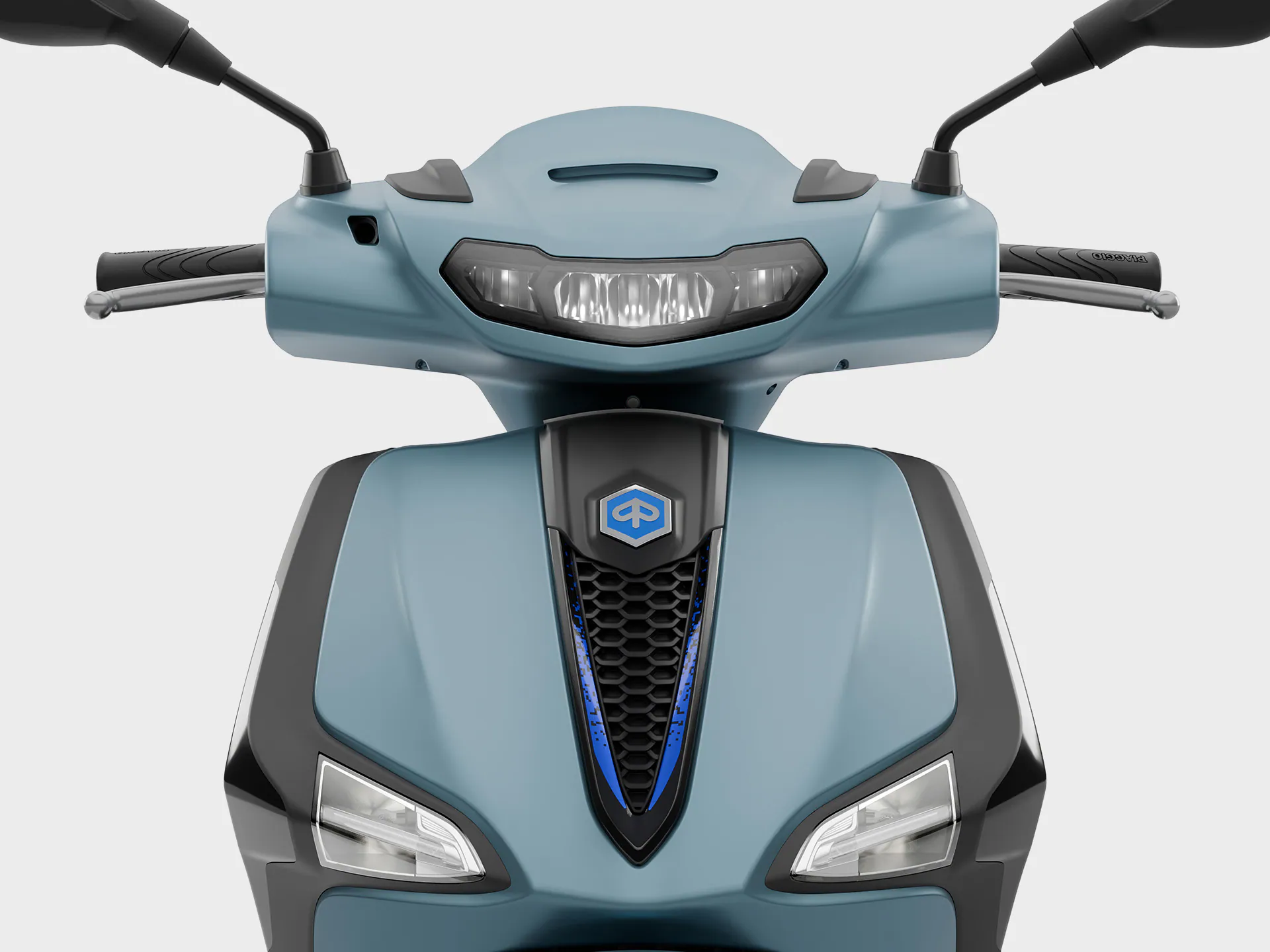 A personalidade audaz da Piaggio Liberty S é expressa nas suas cores arrojadas, mas são os detalhes que fazem a diferença. Os acabamentos em preto brilhante adornam as luzes traseiras, os indicadores de direção e o logo, enquanto que pormenores em azul acentuam a gravata e as jantes. O moderno farol horizontal em LED e a grelha em forma de colmeia conferem um design arrojado à dianteira, permanecendo no entanto fiel às linhas tradicionalmente equilibradas da Piaggio Liberty.