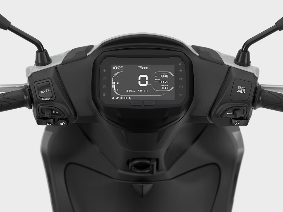 O painel digital full LCD a cores de 5,5´´da Piaggio Liberty S adapta-se a qualquer altura do dia, com os seus modos Day e Night, assegurando uma visibilidade perfeita em todas as condições. Com o botão Mode incorporado no guiador, é possível o acesso instantâneo à informação do computador de bordo, incluindo os dados da viagem, consumo médio e consumo instantâneo. A Piaggio Liberty S também impressiona com a sua capacidade de carga, graças ao pousa-pés plano e à abertura elétrica do banco, controlada por um botão no guiador.