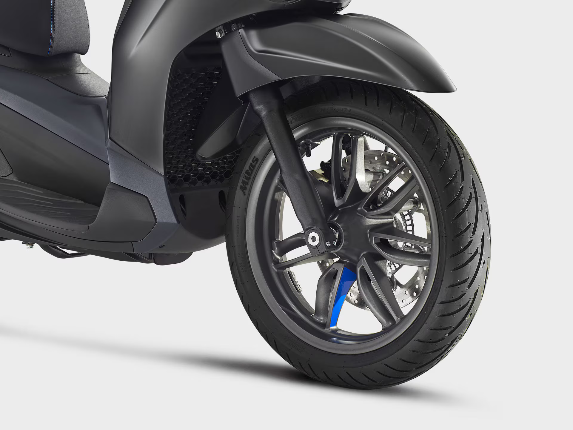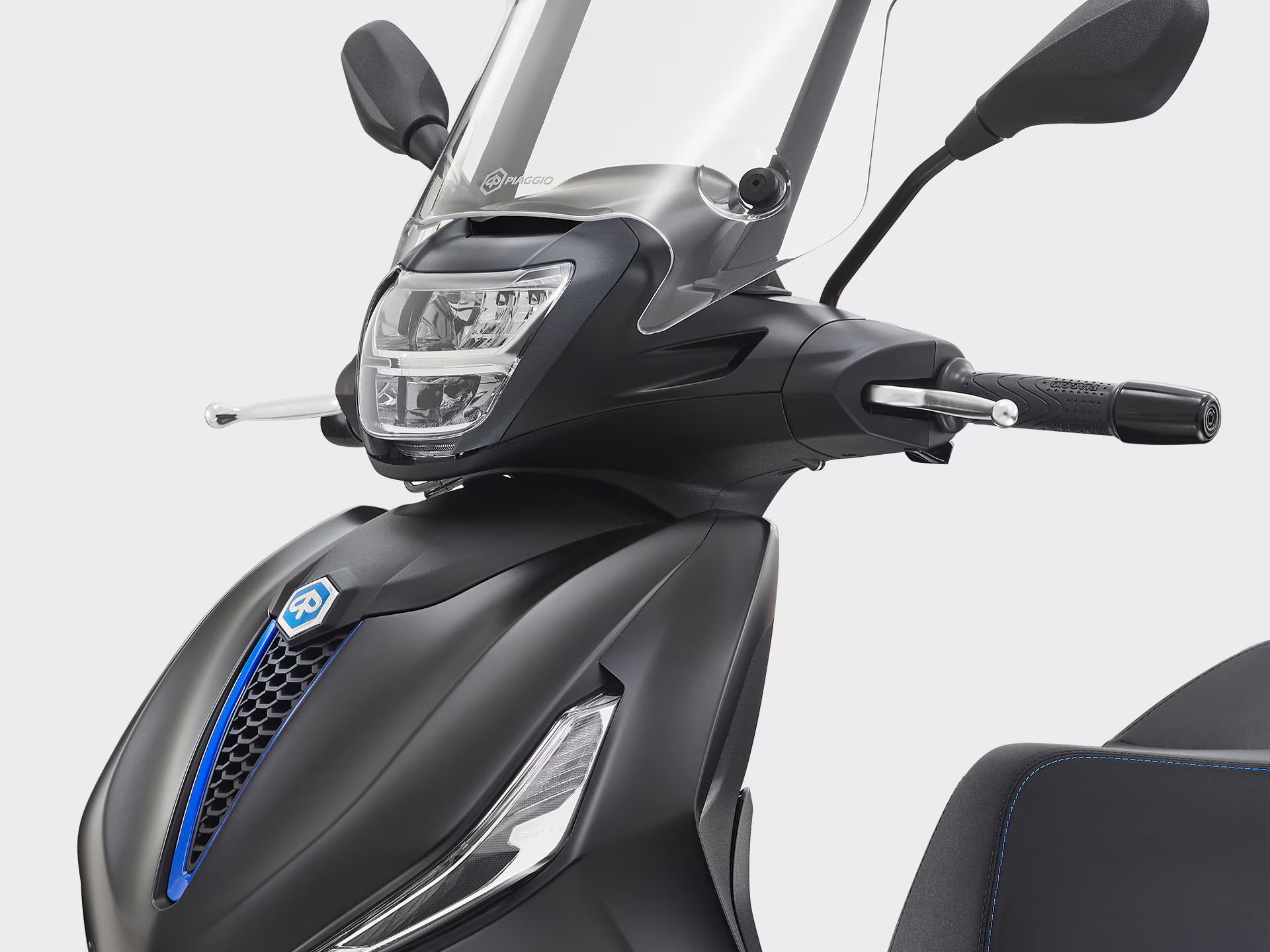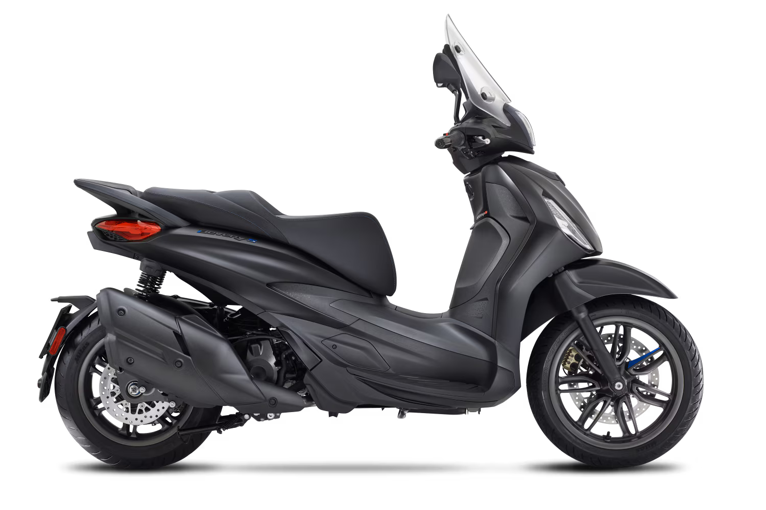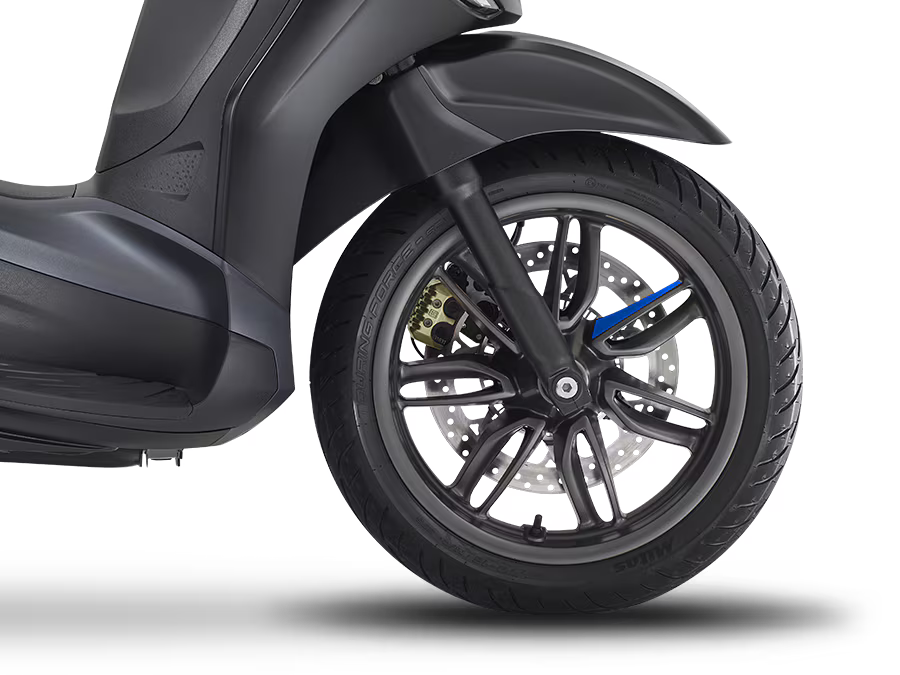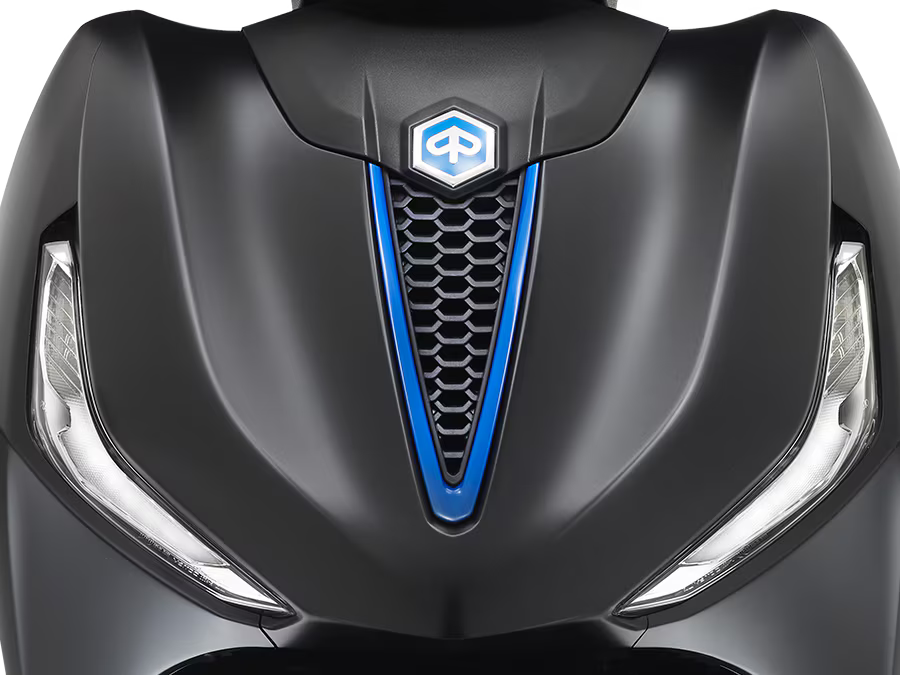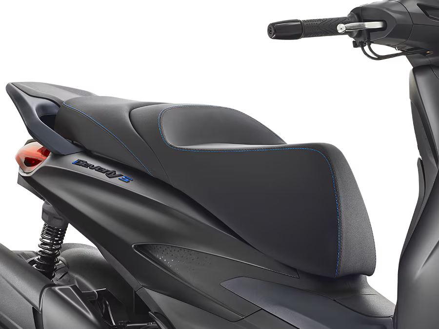 A Piaggio Beverly S tem uma alma desportiva, expressa no acabamento grafite mate em detalhes como as jantes, pegas do passageiro e molduras do painel de instrumentos e farol. O tom azul no logo “S” e na gravata da parte frontal enfatiza o seu caráter único. A frente distintiva, com entrada de ar em V e grelha em favo, a par da traseira esguia e do banco com costura dupla, completa o design, criando a fusão perfeita entre uma scooter desportiva de roda alta e uma GT.