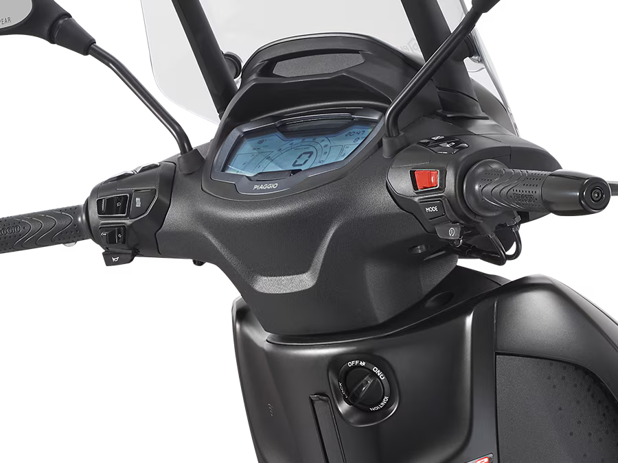 A instrumentação avançada da Piaggio Beverly S foi desenhada para simplificar todos os momentos de condução. É fácil detetar os dados da viagem no display digital LCD de 5,5´´e também é possível ligar o smartphone via Bluetooth com a Piaggio MIA, que é de série. Esta solução oferece funções exclusivas, como gestão de chamadas e das músicas preferidas. O sistema keyless, também de série, eleva a conveniência ao próximo nível – é possível ligar o motor, abrir o banco a ativar a tranca da direção com o comando. Em suma, tecnologia e funcionalidade em perfeita harmonia.