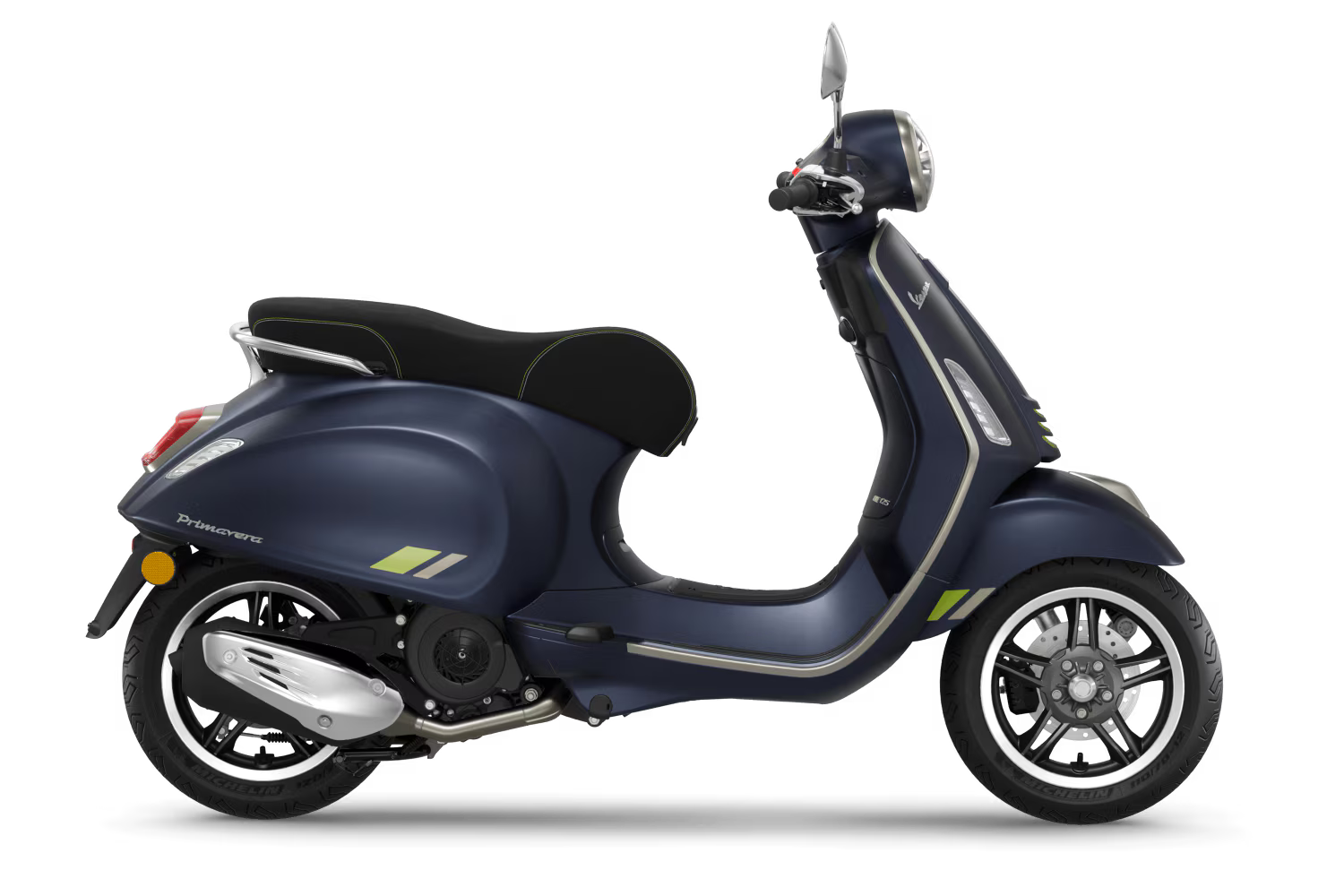 A Vespa Primavera Tech acrescenta inovação tecnológica à alma autêntica da Vespa Primavera para criar um estilo moderno e exclusivo. Os acabamentos cromados e as cores iridescentes combinam na perfeição com o impressionante jogo de luz, enquanto que os detalhes em verde fluorescente injetam um toque dinâmico e tecnológico.